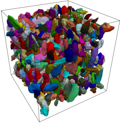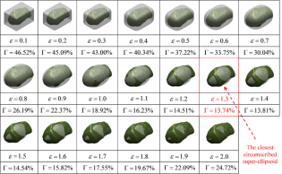 基于对目前多种颗粒生成方法的比较研究,建立了一种将主成分分析(PCA)与系数标准化相结合的方法作为颗粒生成的基本框架(如图2所示)。基于对颗粒与其最佳外接超椭球表面之间的补偿半径进行球谐函数展开,提出了一种能够很好保留母颗粒轴长比形态特征的颗粒重构方法(如图3所示)。将该重构方法纳入到颗粒生成框架中形成新的颗粒生成方法,实现了较大范围轴长比和棱角度的虚拟颗粒生成(如图4所示)。