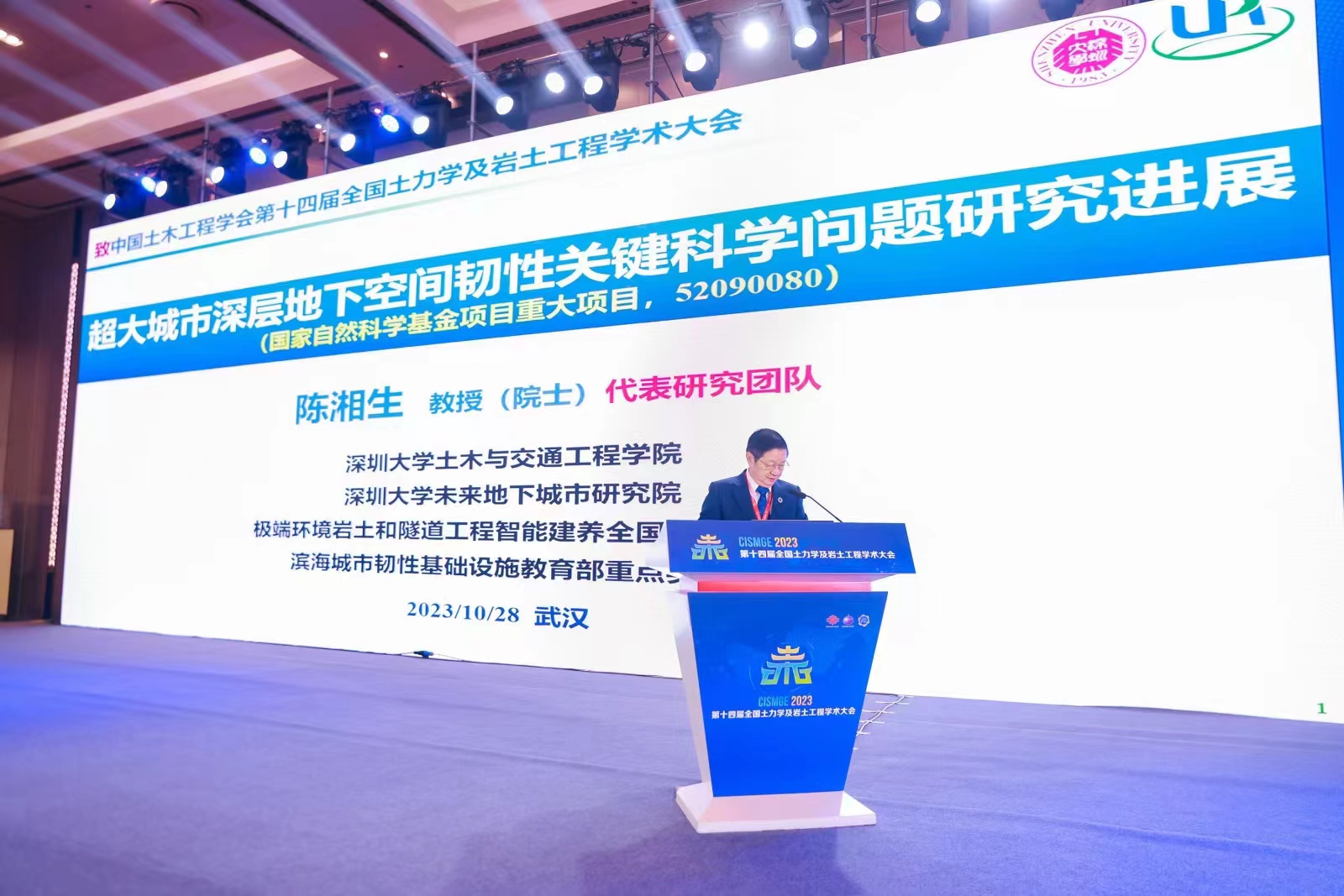 深圳大学未来地下城市研究院院长陈湘生院士率领研究院师生参加了本次大会。作为大会的首位主旨报告人,陈院士在大会上发表了题为“超大城市深层地下空间韧性关键科学问题研究进展”的精彩学术汇报,介绍了城市地下空间韧性理论与技术的最新研究成果,为探索城市地下空间高质量发展提供思路。