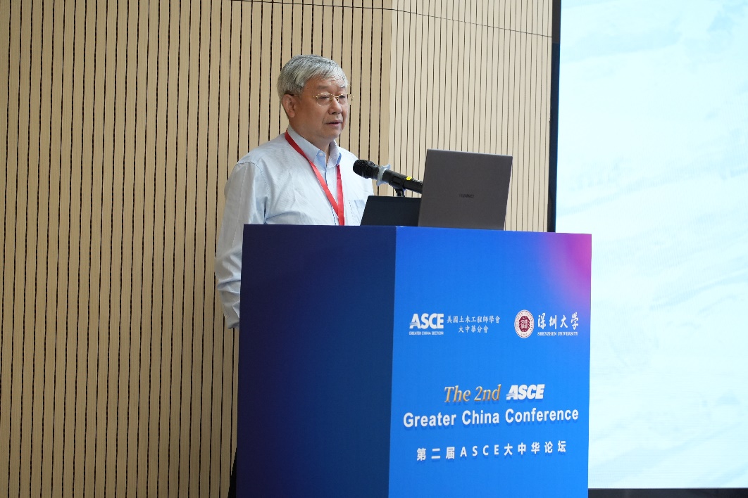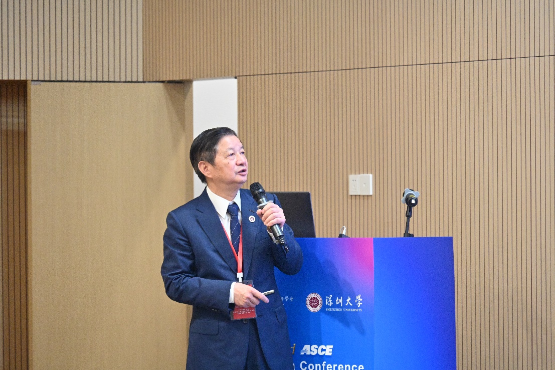 我校张晓红副校长、我院院长陈湘生院士、美国土木工程师学会大中华区主席邓晓蔚教授致大会开幕辞。张晓红副校长在大会开幕式上指出,深圳大学于1983年由清华、北大、人大等三所名校共同援建,如今已经成长为一所拥有全学科领域的综合性大学。40年的发展历程中,深圳大学培养了众多优秀人才,积极投身社会服务,成为特区大学、窗口大学、实验大学的典范。学校一直致力于推动土木工程创新和可持续发展,涵盖了从可持续基础设施到尖端建筑材料等多个领域。张校长对出席本次大会的各位嘉宾深表感谢,并祝愿第二届ASCE大中华论坛圆满成功。