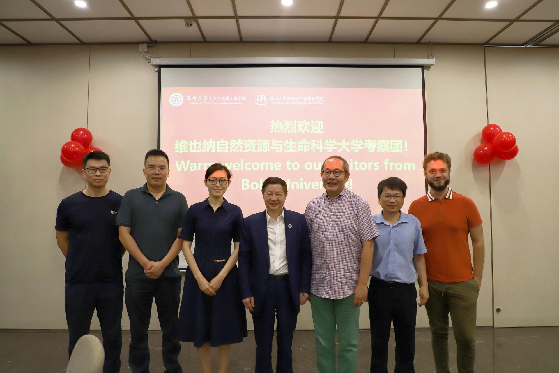 2024年10月20日,奥地利维也纳自然资源与生命科学大学(简称BOKU)实习考察团来深圳大学未来地下城市研究院访问交流,考察团一行共24人,由国际岩土力学领域的著名专家吴伟教授亲自带队。深圳大学土木与交通工程学院及未来地下城市研究院院长陈湘生院士、土木与交通工程学院副院长包小华教授、未来地下城市研究院副院长苏栋教授、金银富教授、孙晓辉教授和Bence Kato助理教授共同接待了吴伟教授一行。在交流会上,Bence Kato向考察团介绍了深圳大学未来地下城市研究院的主要情况以及近期的科研进展。