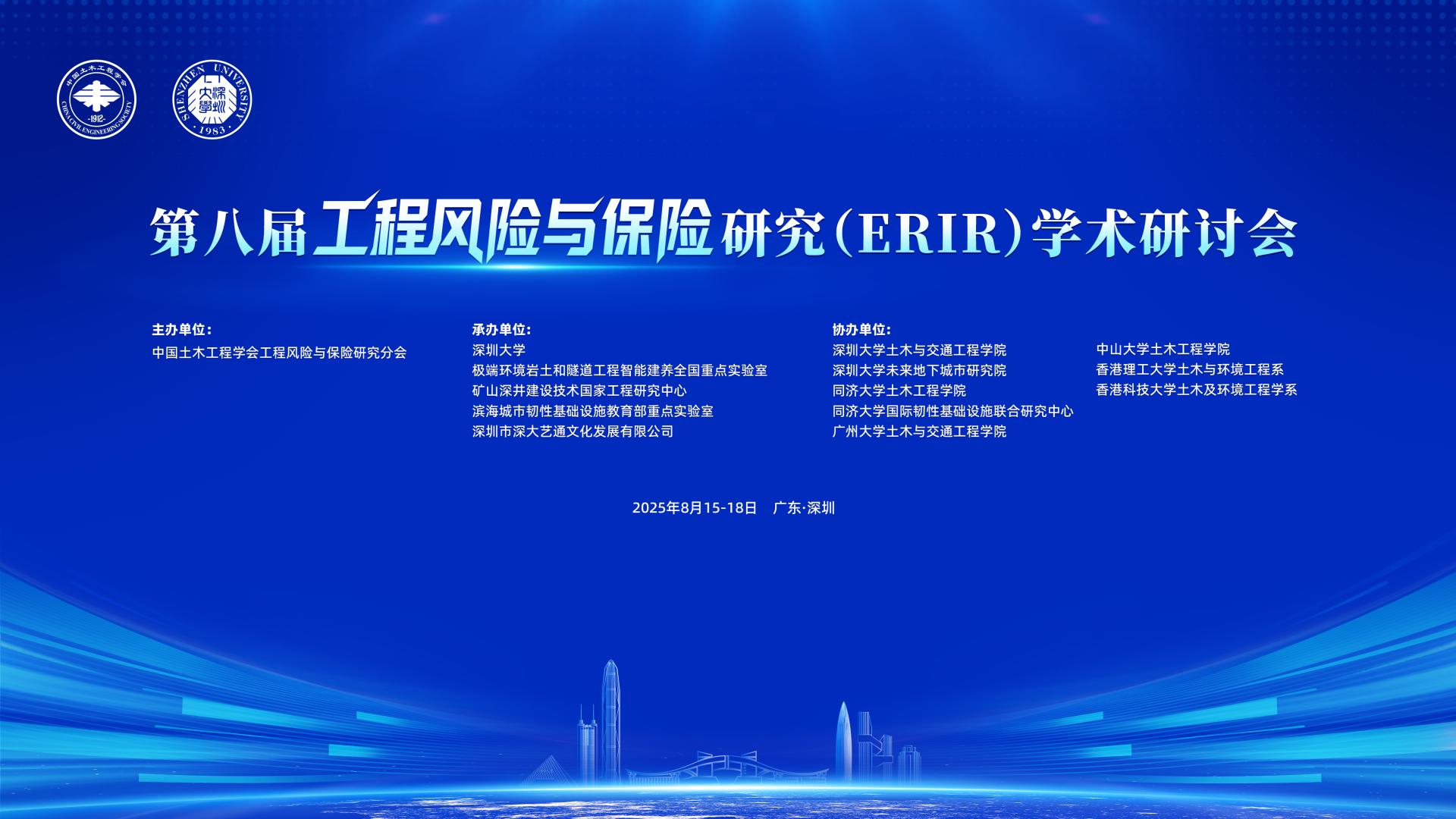 2025年8月17日,实验室承办的以“交叉学科与AI赋能下土木工程风险与保险”为主题的第八届工程风险与保险研究学术研讨会圆满落幕。此次大会由中国土木工程学会工程风险与保险研究分会主办,深圳大学极端环境岩土和隧道工程智能建养全国重点实验室、矿山深井建设技术国家工程研究中心、滨海城市韧性基础设施教育部重点实验室等承办,深圳大学土木与交通工程学院、深圳大学未来地下城市研究院、同济大学土木工程学院等多家单位协办。