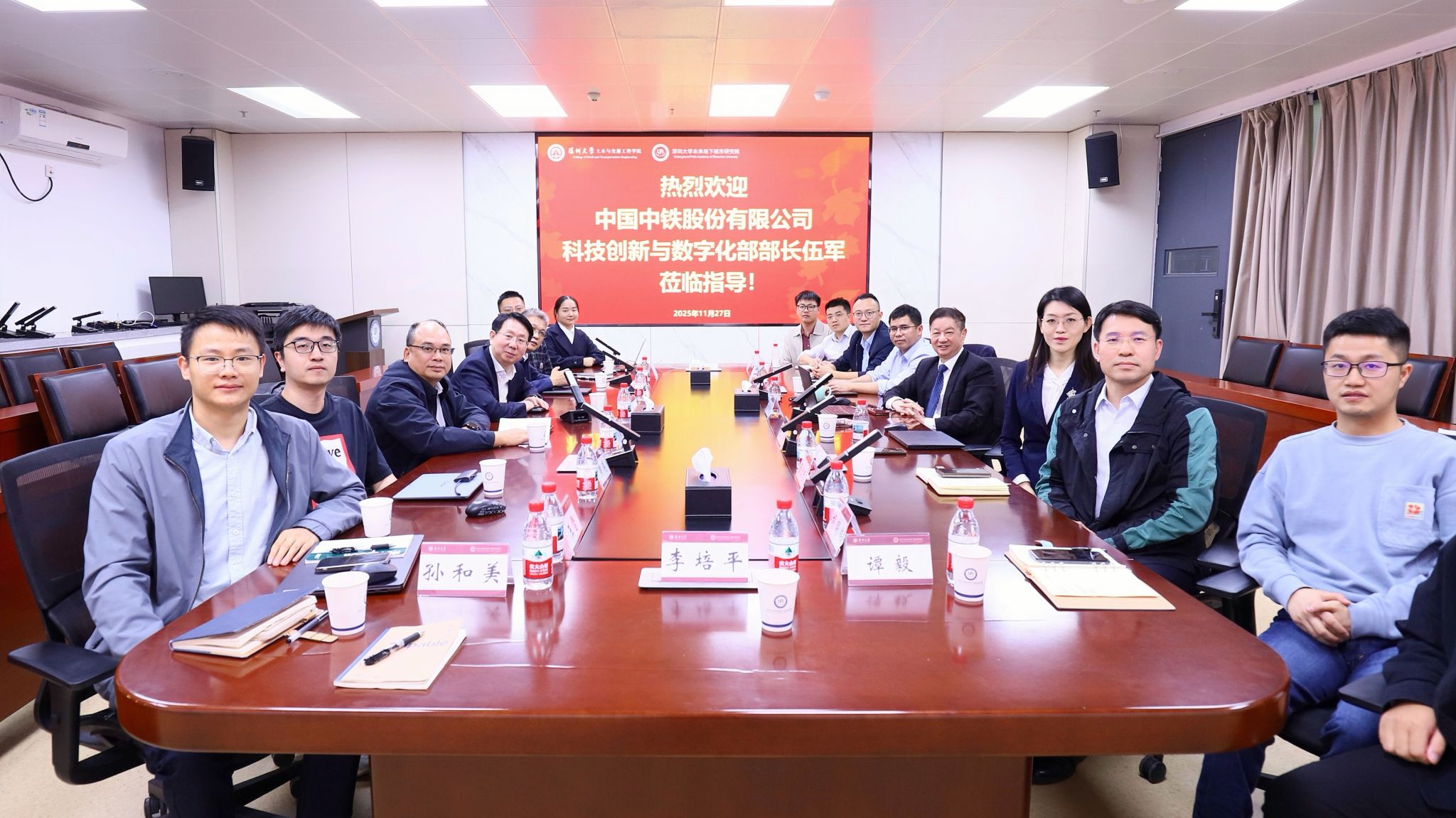 27日下午,中国中铁股份有限公司科技创新与数字化部部长伍军、中铁南方投资集团有限公司总工程师龙伟、设计部长李虎伯一行莅临深圳大学未来地下城市研究院并进行指导交流。深圳大学土木与交通工程学院及未来地下城市研究院院长陈湘生院士会见来宾并主持会议,科学技术发展研究院院长崔宏志教授、学院副院长包小华教授、研究院副院长王树英教授、总信息师胡明伟教授以及相关专业教师现场参会,会议在粤海校区(南区)致理楼1007会议室举办。
