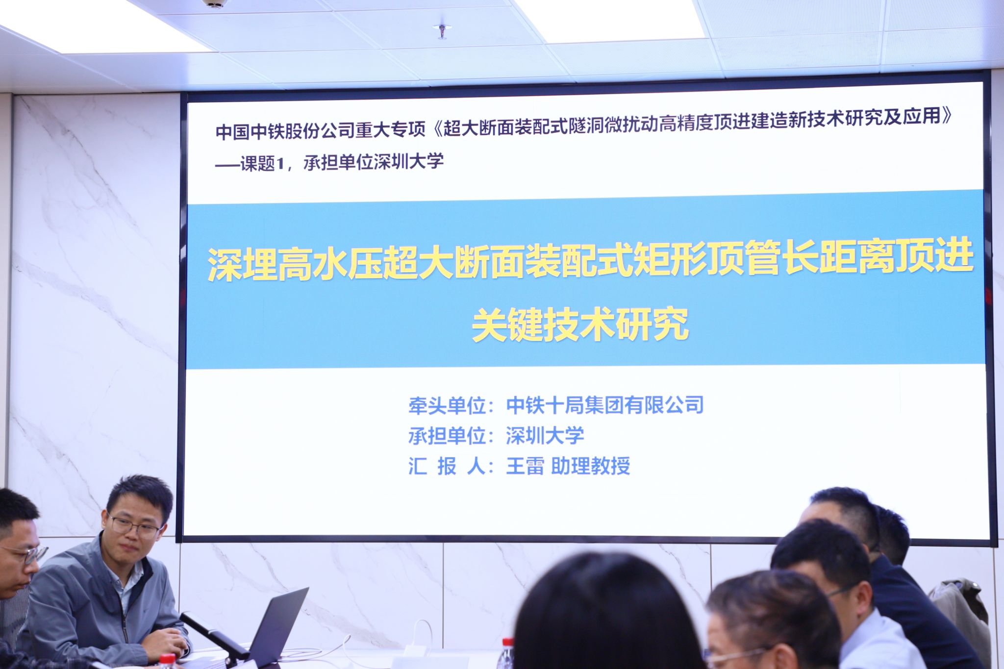 王雷助理教授对《深埋高水压超大断面装配式矩形顶管长距离顶进关键技术研究》进行了介绍。
