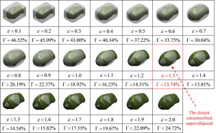 基于对目前多种颗粒生成方法的比较研究,建立了一种将主成分分析(PCA)与系数标准化相结合的方法作为颗粒生成的基本框架(如图2所示)。基于对颗粒与其最佳外接超椭球表面之间的补偿半径进行球谐函数展开,提出了一种能够很好保留母颗粒轴长比形态特征的颗粒重构方法(如图3所示)。将该重构方法纳入到颗粒生成框架中形成新的颗粒生成方法,实现了较大范围轴长比和棱角度的虚拟颗粒生成(如图4所示)。