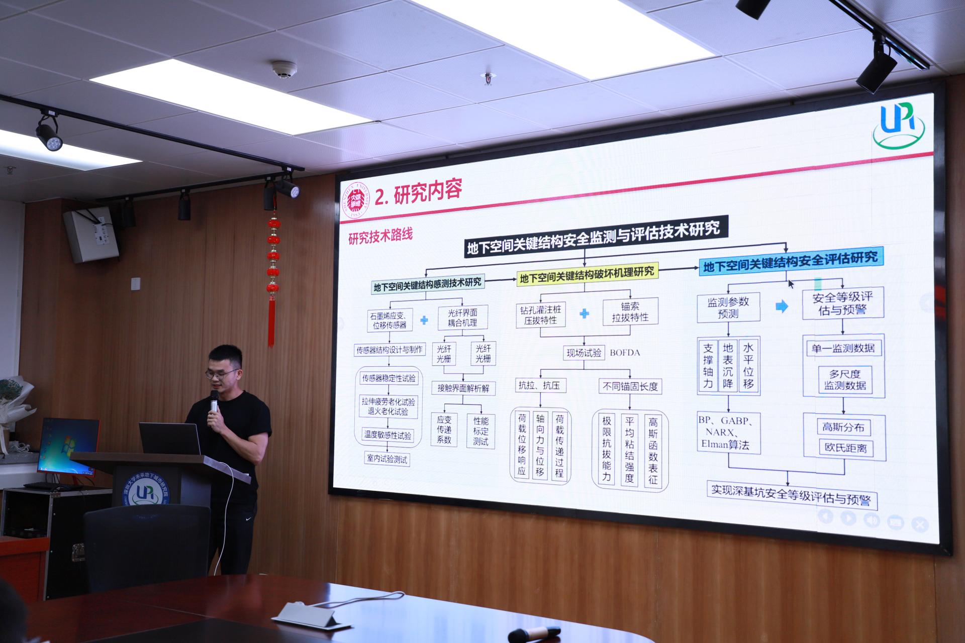 在论坛的学术报告环节,博士后陈伟斌作了题为《地下空间关键结构感测技术研究》,研究从地下空间关键结构的感测技术入手,开发了基于石墨烯的实时监测系统,用以评估地下结构稳定性并监测混凝士裂缝同时探讨了石墨烯传感器的传感机制与温度稳定性。