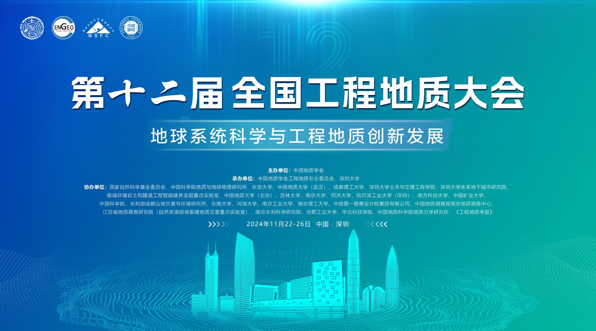 2024年11月26日,深圳大学未来地下城市研究院承办的第十二届全国工程地质大会圆满成功。本次大会由中国地质学会主办,中国地质学会工程地质专业委员会和深圳大学承办,国家自然科学基金委员会、中国科学院地质与地球物理研究所、深圳大学土木与交通工程学院、深圳大学未来地下城市研究院等多家单位协办。深圳大学土木与交通工程学院、未来地下城市研究院院长陈湘生院士担任大会学术委员会主席。