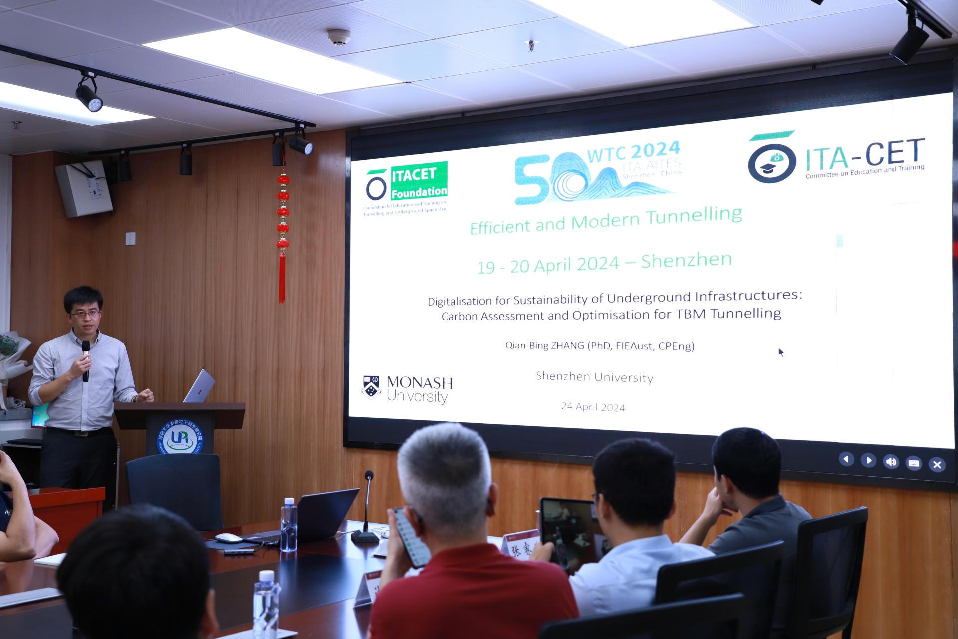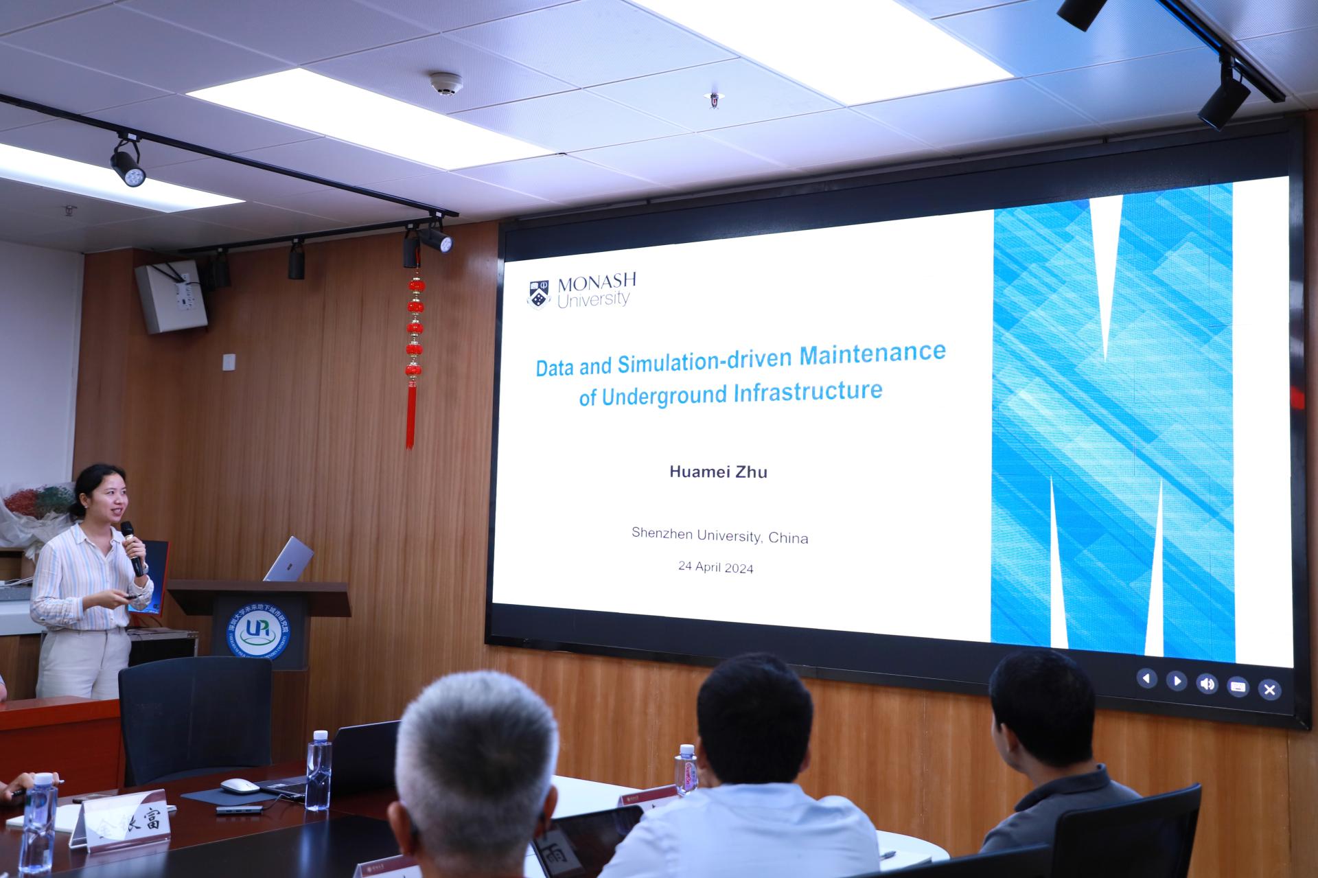 2024年4月24日,澳大利亚蒙纳士大学张乾兵教授、朱化梅博士来访深圳大学未来地下城市研究院开展学术交流,研究院副院长苏栋教授、总信息师胡明伟教授、总工程师付艳斌教授、院长助理洪成雨副教授和相关专业教师会见来宾,双方在粤海校区(南区)致理楼1007会议室开展交流,30余名博、硕士研究生参加本次交流会。