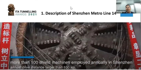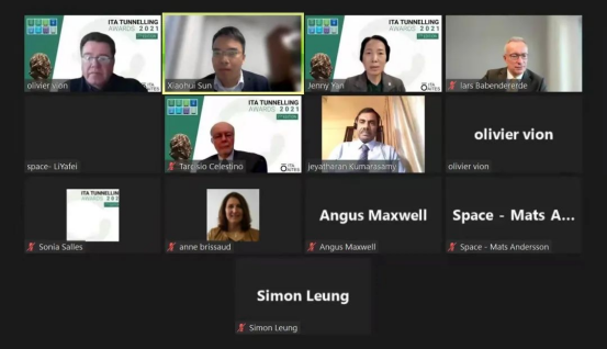 在该国际奖项的申报中,孙晓辉助理教授基于项目研究积累,负责文稿整理、视频动画制作和汇报答辩。颁奖典礼(线上)上,国际隧道协会执行主任Olivier Vion指出该成果在隧道建设中至关重要,协会主席Jenny Yan向团队表示祝贺,孙晓辉助理教授代表整个科研团队致获奖感言。
