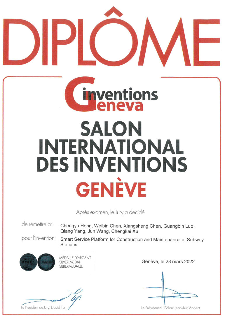 在刚刚结束的2022年第48届瑞士日内瓦国际发明展览会上(48th INTERNATIONAL EXHIBITION OF INVENTIONS GENEVA),由深圳大学土木与交通工程学院、未来地下城市研究院洪成雨老师研发的地铁车站建维智能管理平台“Smart Service Platform for Construction and Maintenance of Subway Stations”荣获“评审团嘉许银奖”。日内瓦国际新技术新产品发明博览会,俗称日内瓦国际发明展创办于1973年,此大型国际展览由瑞士联邦政府,日内瓦州政府,日内瓦市政府,世界知识产权组织共同举办,是全球举办历史最长,规模最大的发明展之一。因疫情原因,该年度的发明展以线上的形式举行,本次展览有超过25个国家及地区近800项创科发明参展,获奖发明由国际专业评审团进行审核。