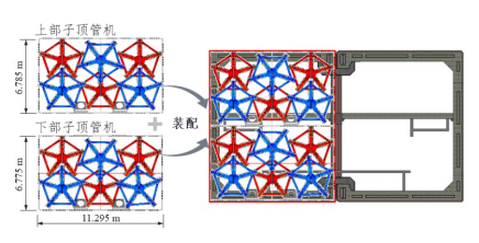 为了破解难题,由深圳大学土木与交通工程学院及未来地下城市研究院院长陈湘生院士担任项目负责人,深圳市地铁集团联合深圳大学、中铁装备和中国电建等单位组建科研团队,开展了广东省重点领域研发计划“现代工程技术”重点专项《繁华城区地铁暗挖车站关键技术》项目研究工作,深圳地铁12号线二期工程沙三站为该项目的示范性应用工程。沙三站位于帝堂路与沙井路交叉路口,为地下二层岛式车站,车站总长208.4米,标准段宽22.7米,有效站台宽13米。车站地处城市繁华城区,周边建筑物多,地下水充沛,地质条件复杂,且站址有一处埋深4.2米的新建暗涵。项目科研团队攻坚克难,针对沙三站研制了新型暗挖施工装备——世界上开挖面积最大(宽11.29米、高13.55米)的矩形顶管机“大禹掘进号”。装备由两台设备上下组合而成,采用多刀盘多螺机协同工作的姿态控制技术,实现了超高掌子面水土压力平衡和左右两次零间隙施工装备技术的重大突破。