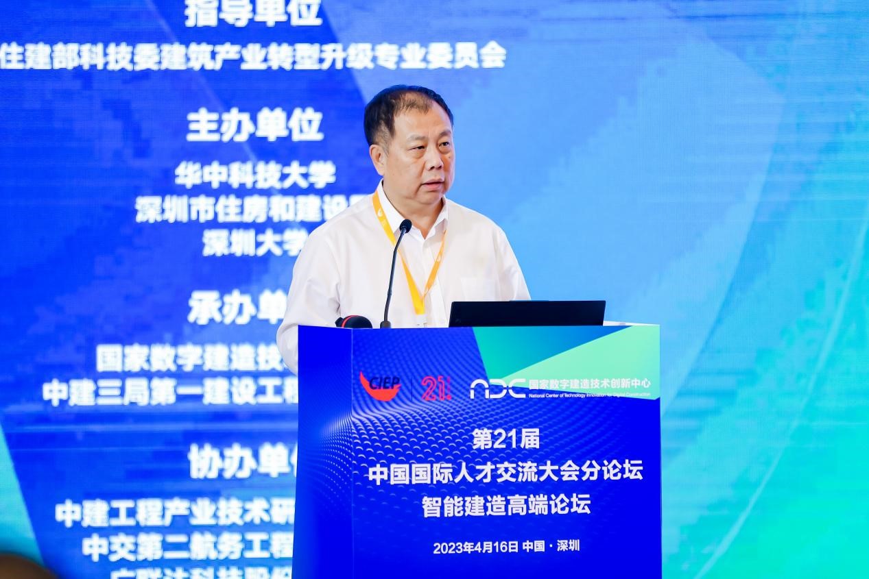 为促进智能建造领域核心共性技术、前沿引领技术和颠覆性技术的研发、转化和应用,由住建部科技委建筑产业转型升级专业委员会等单位指导,华中科技大学、深圳市住房和建设局、深圳大学等单位主办,国家数字建造技术创新中心、中建三局第一建设工程有限责任公司等单位承办的第21届中国国际人才交流大会分论坛——智能建造高端论坛于2023年4月16日在深圳会展中心成功举办。