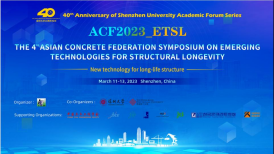 2023年3月11-13日,由亚洲混凝土协会主办,深圳大学土木与交通工程学院(CCTE)和香港理工大学土木与环境工程系(CEE)联合承办的“第四届亚洲混凝土协会国际研讨会—结构长寿命化新技术(ACF2023_ETSL)”在深圳成功举行。作为40周年校庆活动的一部分,本次会议的举办也受到了深圳大学的高度重视。会议邀请了中国工程院聂建国院士、中国工程院欧进萍院士、中国工程院缪昌文院士、中国工程院吕西林院士、中国科学院滕锦光院士、中国科学院李杰院士、中国科学院徐世烺院士以及亚洲混凝土协会主席史才军教授等国内外顶级专家参会并做大会报告。