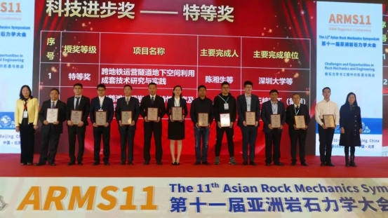 2021年10月24日上午,2021年第十二届“中国岩石力学与工程学会科学技术奖“颁奖典礼在十一届亚洲岩石力学大会(ARMS11)闭幕式上举行,由我院院长陈湘生院士牵头的“跨地铁运营隧道地下空间利用成套技术研究与实践”项目荣获科技进步特等奖,陈湘生院士为第一完成人,深圳大学为第一完成单位。研究院副院长包小华教授代表项目团队参加会议并领奖。