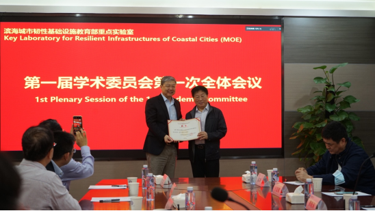 深圳大学党委书记、校长李清泉教授代表学校对各位与会院士、专家的莅临指导表示热利的欢迎,并向各位学术委员会委员颁发聘书。李清泉书记、校长充分肯定了重点实验室过去一年的工作,他表示粤港澳大湾区的土木工程建设规模是世界首屈一指的,在这样一个时代背景下,深圳大学将全力支持滨海城市韧性基础设施教育部重点实验室的快速发展。