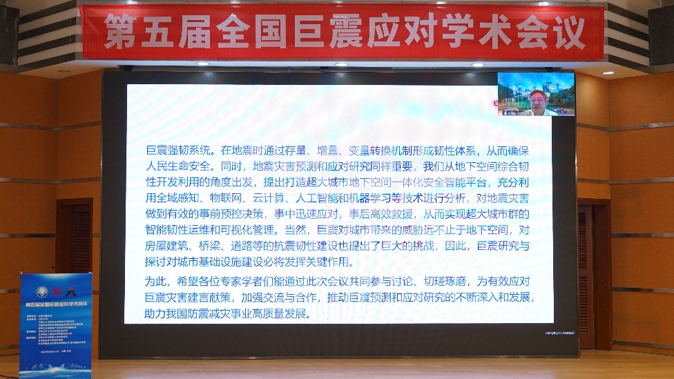 我院院长陈湘生院士作为大会主席进行了致辞。陈湘生院士指出,党的二十大明确提出提高防灾减灾救灾和重大突发公共事件处置保障能力,加强国家区域应急力量建设等一系列重要指示批示,为防震减灾提供根本依循。如今,打造韧性城市已成为国家的重大战略需求,提升城市的抗震韧性也已成为建设韧性城市的重要指标。我国经济发达地区地震脆弱性非常大,巨震的发生将造成重大人员伤亡和财产损失,因此如何有效应对巨震灾害具有重要的社会价值和现实意义。