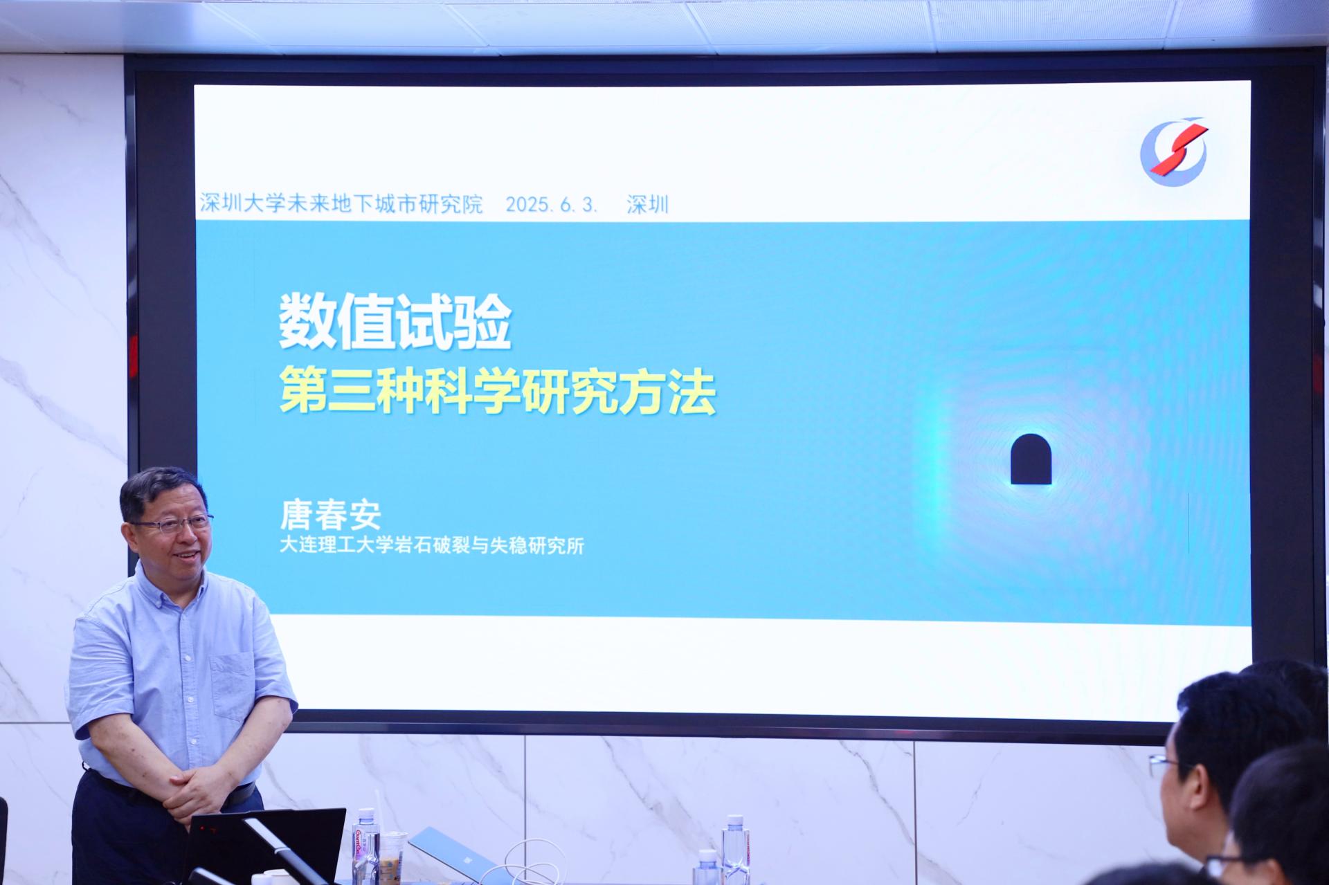 2025年6月3日下午,大连理工大学唐春安教授莅临深圳大学未来地下城市研究院举行学术交流会,此次交流会在粤海校区(南区)致理楼1007会议室开展。研究院副院长苏栋教授主持会议,副院长王树英教授、相关专业教师、博士后及20余名博硕士研究生现场参会交流。