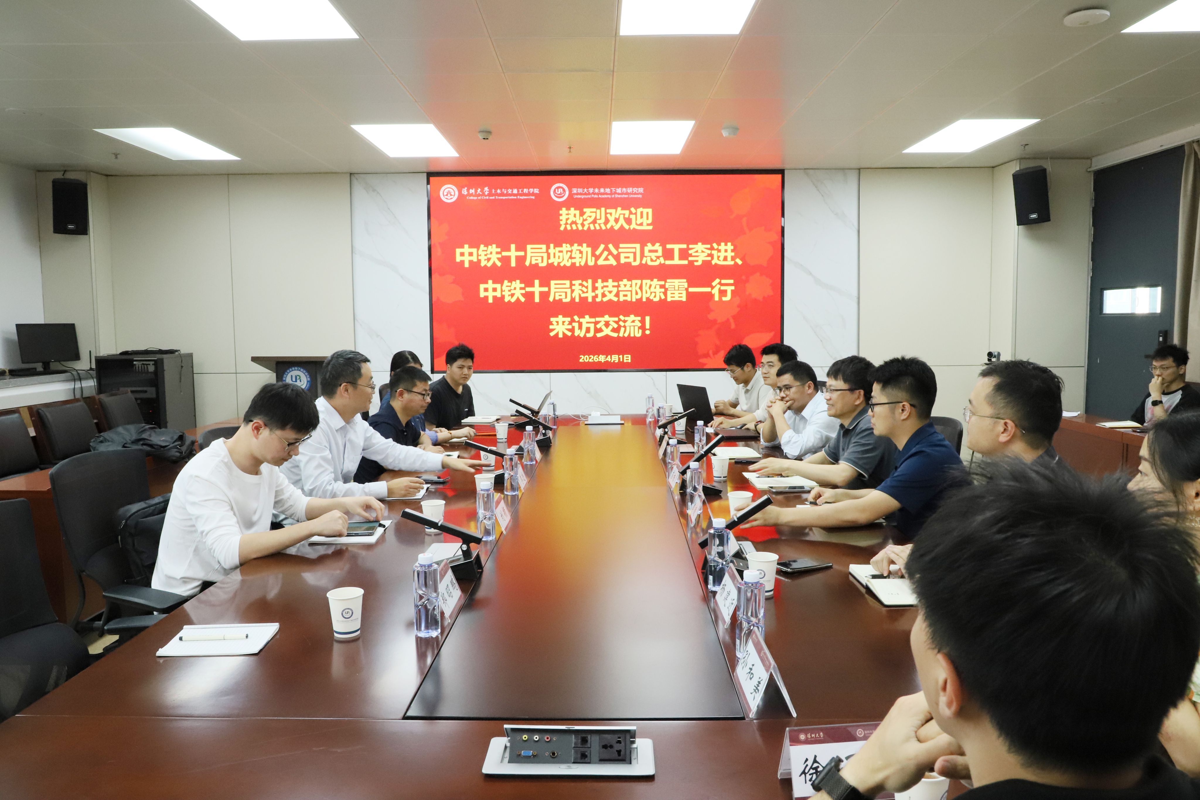 2026年4月1日下午,中铁十局城轨公司总工李进、中铁十局科技部陈雷一行来访我院,围绕顶管智能管控平台研发开展研讨交流。深圳大学未来地下城市研究院副院长苏栋教授主持会议,副院长王树英教授,特聘教授郑响凑等10位老师、博士后参加会议,本次会议在粤海校区(南区)致理楼1007会议室召开。