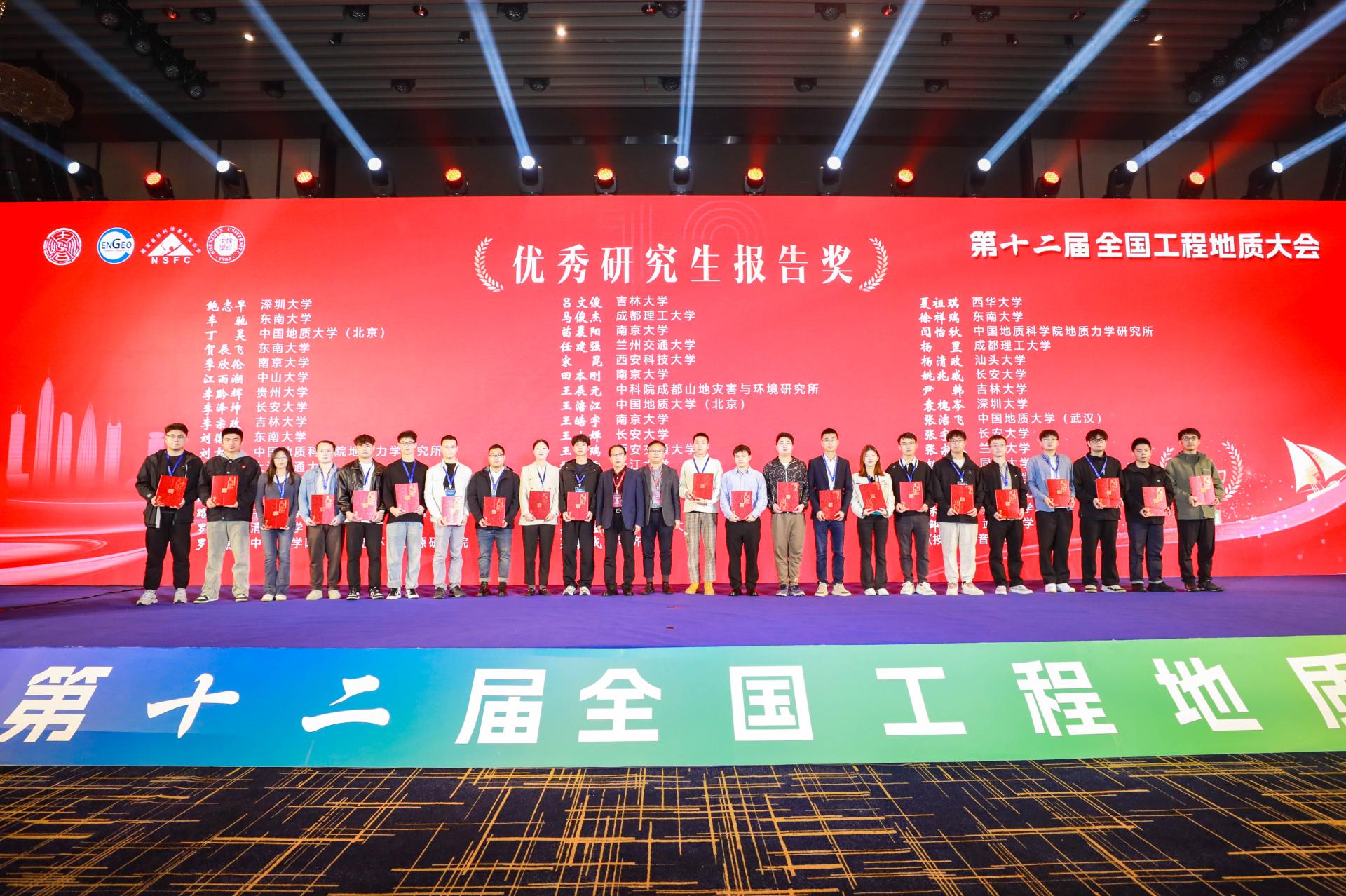 本次大会特别策划并举办了多达262场的研究生报告,为广大学子提供了一个展示研究成果和促进学术交流的宝贵平台。经过激烈角逐与严格评审,最终评选出50位优秀研究生报告奖得主,长安大学彭建兵院士与中国地质学会工程地质专业委员会副主任委员葛永刚研究员分别为获奖者进行颁奖。