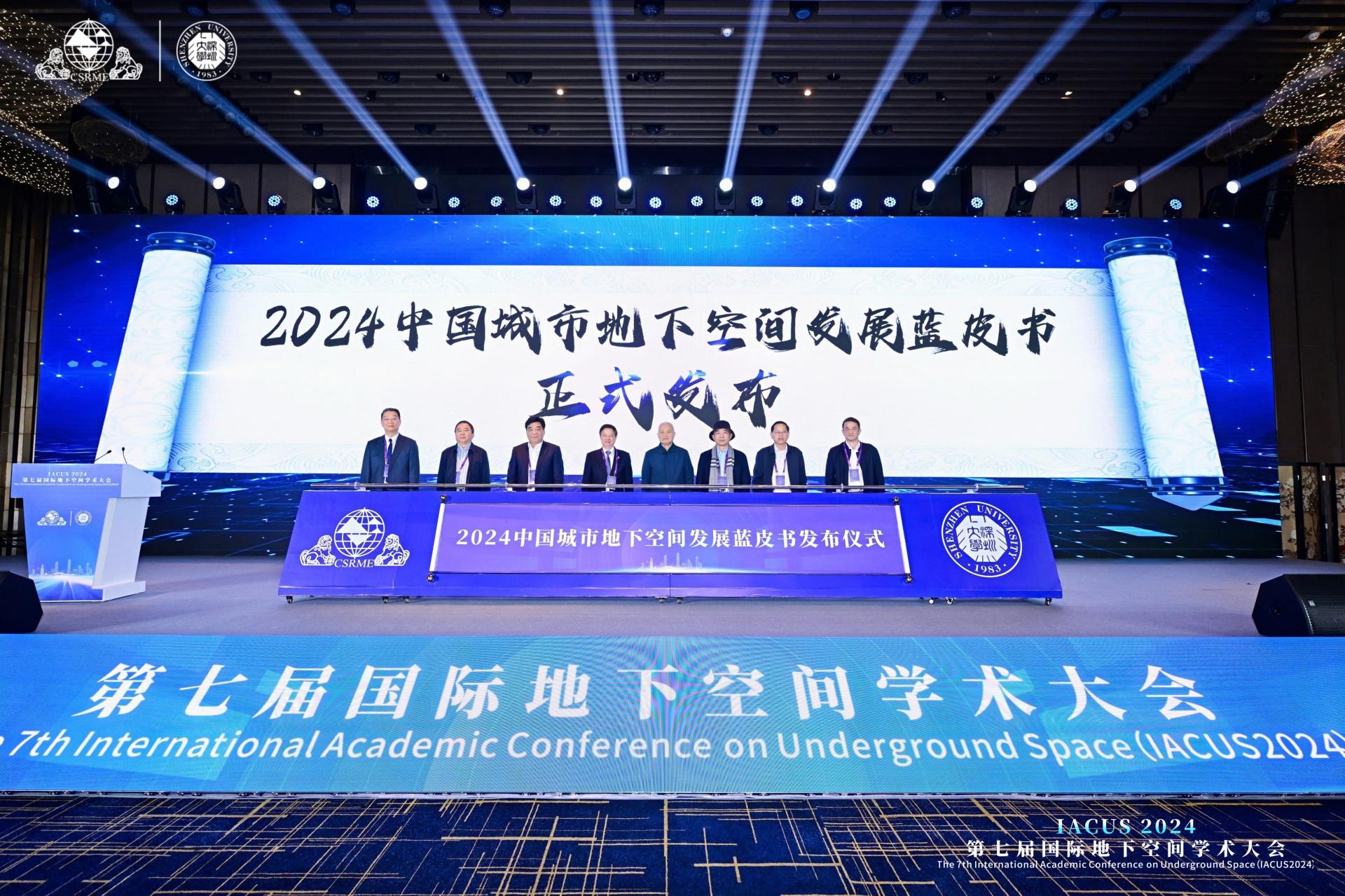 深圳大学土木与交通工程学院、未来地下城市研究院院长陈湘生院士担任大会组织委员会主席,大会开幕式由分会理事长陈志龙大师主持。深圳大学周辉副校长、中国岩石力学与工程学会副理事长周创兵院士、大会组织委员会主席陈湘生院士分别对大会顺利举办致辞,强调了地下空间学科在新型城镇化和城市高质量发展中的重要作用,并期待本次大会能成为推动地下空间学术创新发展的重要平台。随后,中国工程院战略咨询中心、中国岩石力学与工程学会地下空间分会和中国城市规划学会地下空间规划分会联合发布了《2024中国城市地下空间发展蓝皮书》。