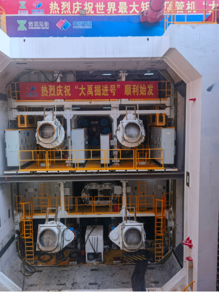 2023年4月18日,世界最大断面组合式矩形顶管机“大禹掘进号”在深圳地铁12号线二期工程沙三站顺利始发,标志着世界首个超大断面矩形顶管暗挖车站正式进入施工阶段,实现了地铁车站施工工法的重大创新,填补了我国在机械化地铁暗挖车站施工方面的空白。据悉,“大禹掘进号”是为地铁12号线二期工程沙三站量身定做的矩形顶管机,机体宽11.29米、高13.55米,是目前世界上开挖面积最大的矩形盾构顶管机。该顶管机由两台设备上下组合而成,采用多刀盘布置方式,通过多个螺旋机协同控制,利用微台阶开挖技术、姿态测量及控制技术等,可实现浅覆土、大断面、零间隙开挖功能。