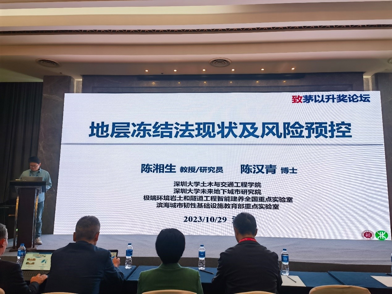 深圳大学未来地下城市研究院院长陈湘生院士率领研究院师生参加了本次大会。作为大会的首位主旨报告人,陈院士在大会上发表了题为“超大城市深层地下空间韧性关键科学问题研究进展”的精彩学术汇报,介绍了城市地下空间韧性理论与技术的最新研究成果,为探索城市地下空间高质量发展提供思路。